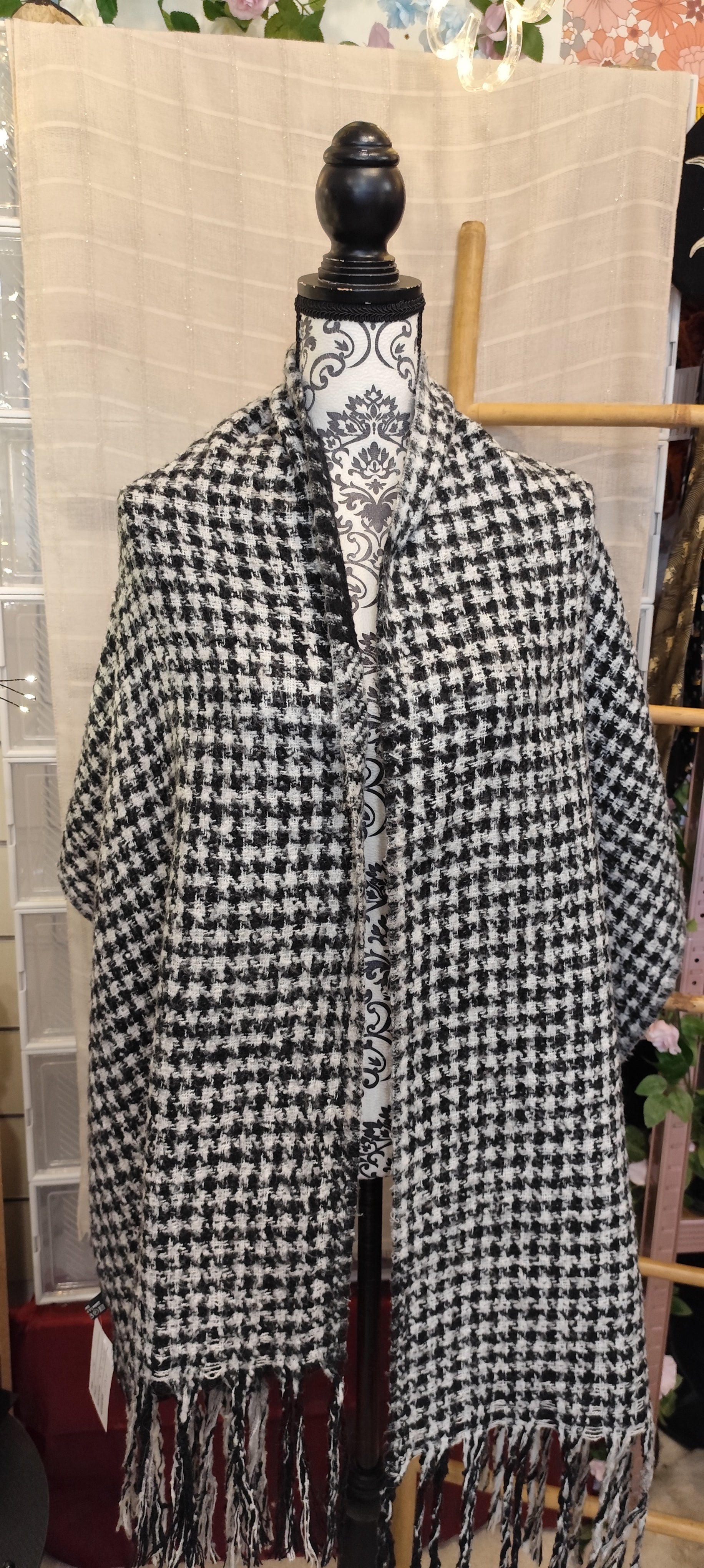 30 % de laine, deux motifs différents à carreaux sur une face pied de poule sur l'autre
